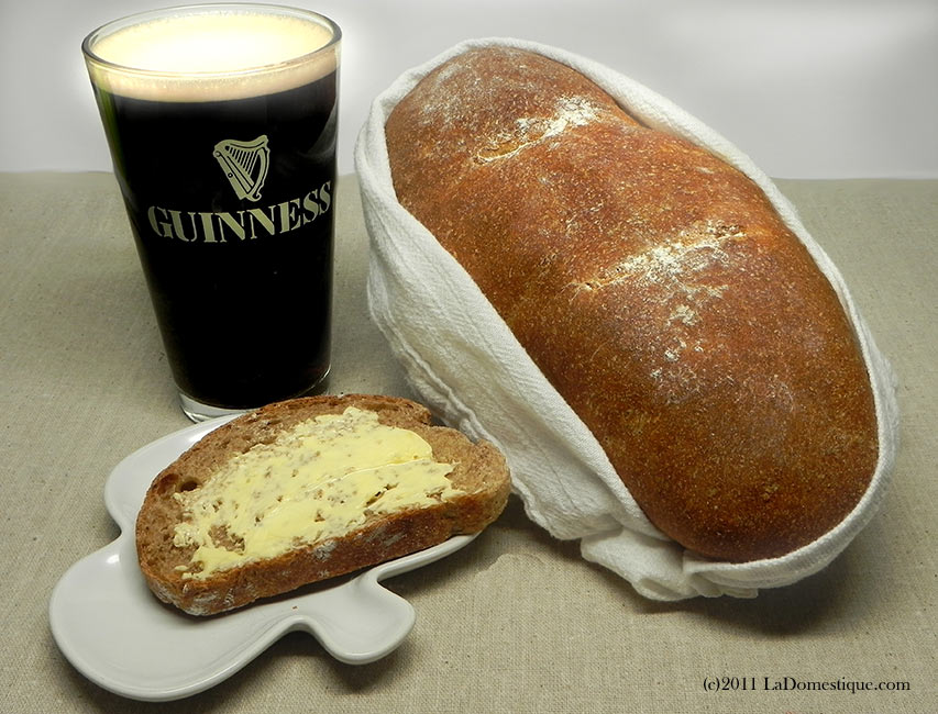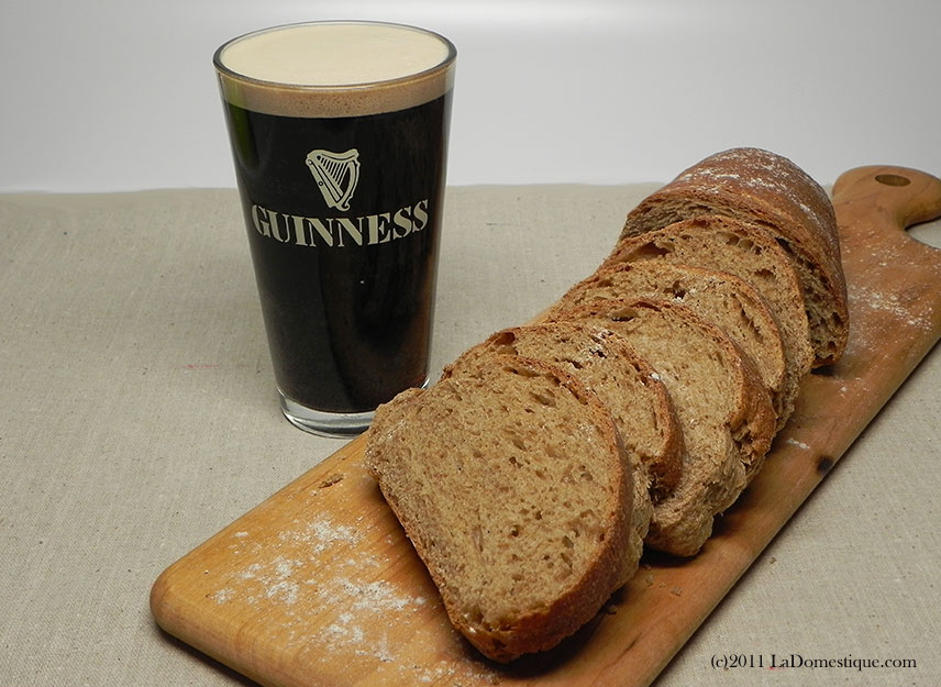 Pour the Guinness into a large mixing bowl and whisk in the yeast. Add the rye flour and 3 cups of the white bread flour. Stir the mixture with a wooden spoon until a thick batter forms. Cover the bowl with a lintfree dishtowel and let rest for 2 hours.