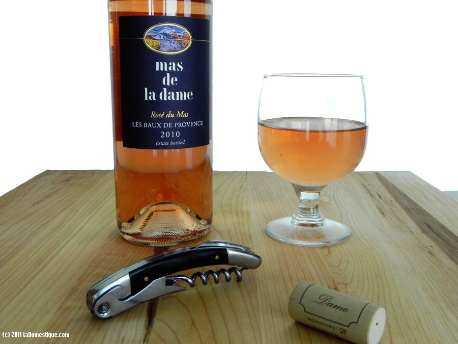 This dish is unbelievably good. Maybe it’s because the gratin is so simple and easy? Maybe it’s the decadent, creamy goat cheese? Maybe it’s the pungent aroma of woody herbs that fills the kitchen? This could be our Friday night go to. I served it on toasted baguette and the husband opened a bottle of Rosé- Mas de la Dame 2010, from Provence of course! Mas de la Dame translates to “Farm of the Women”, and it’s owned by two women. The ancient land has been farmed with organic methods for thirty years. If you’re a rosé lover, this luscious wine will seduce you with the delicate flavor of wild strawberries, ripe peaches, and a hint of herbacious character. It’s dry with acidity that’s balanced by good structure. Mas de la Dame Rosé is a blend of 50% Grenache, 30% Syrah, and 20% Cinsault. I paid $19 at a local wine shop, but you could probably find it for less.