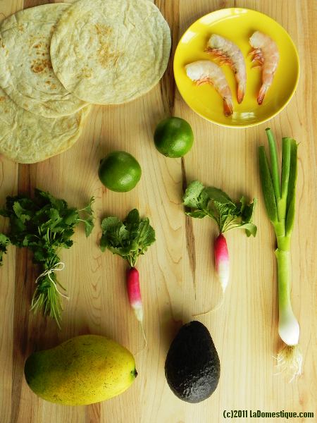 Spring Radish Salsa can be served simply with chips, but it’s also nice over grilled seafood or meat. Here I served it with shrimp and fresh tortillas from the tortilla lady (aka La Esmeralda) at Boulder Farmer’s Market. A little avocado is nice too.