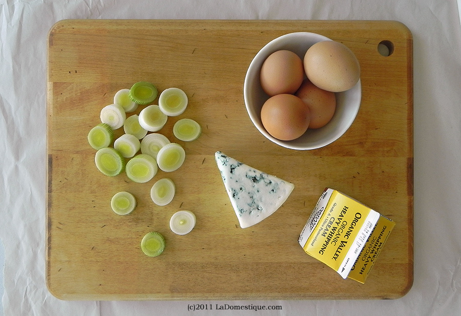 Each time I pick an ingredient of the week, there is usually one dish I become obsessed with trying. For leek week that dish is leek tart. As I scanned the internet and my cookbooks for a recipe, my obsession was fueled by pictures of flaky pastry topped with buttery leeks and melted cheese. With great difficulty, I chose Gill’s Poached Leek and Blue Cheese Tart from River Cottage Every Day. For starters, the picture of the recipe in the book (taken by Simon Wheeler) completely seduced me. I also thought the idea of poaching the leeks, then using the poaching liquid to flavor the custard in this quichey tart, was very clever. For years I’ve been a big fan of everything River Cottage, and come to rely on Hugh Fearnley-Whittingstall’s books for solid recipes that come together with ease. His recipes are easy to adapt as the ingredient list is usually short and the instructions rely on basic cooking techniques to encourage intuitive cooking. If you’re not into blue cheese, maybe try Gruyére, goat cheese, or even a white cheddar. I went with Roth Kase Buttermilk Blue, a creamy and tangy raw milk cheese made in Wisconsin. I always taste blue cheese at the store counter, because I want to make sure to pick one that’s not too salty for cooking with.