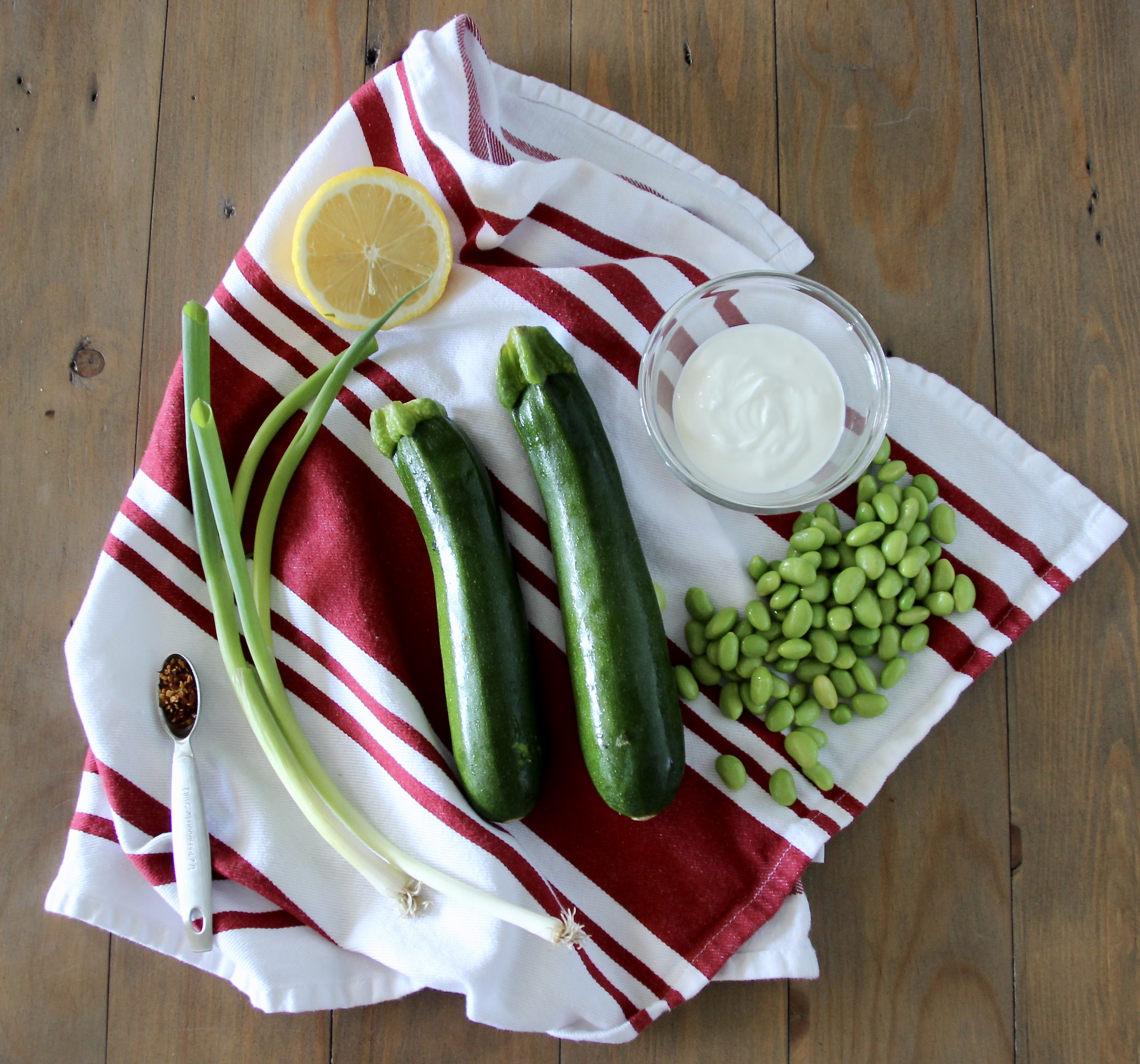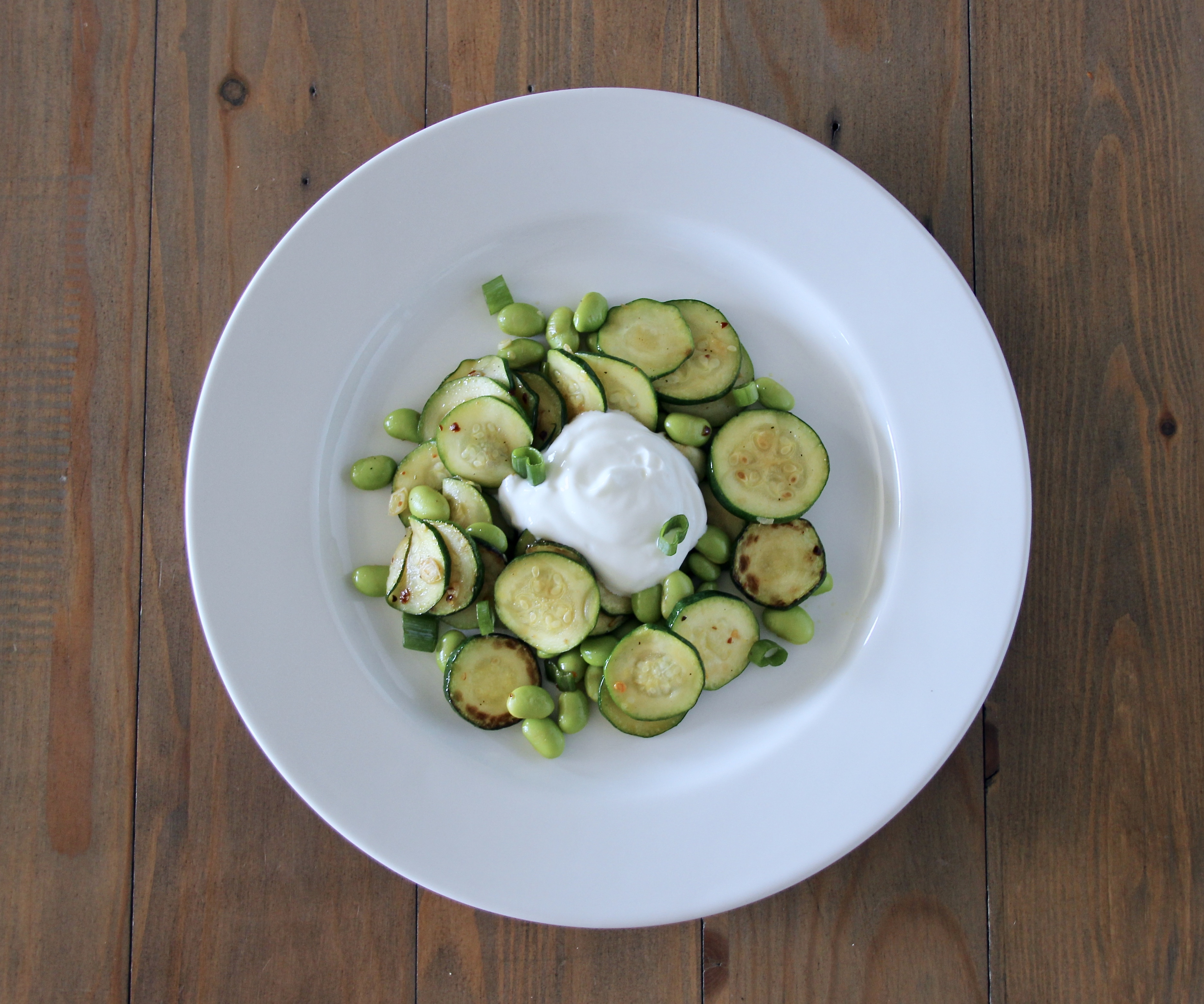 Lemony Courgettes with Edamame, Chile, and Yogurt